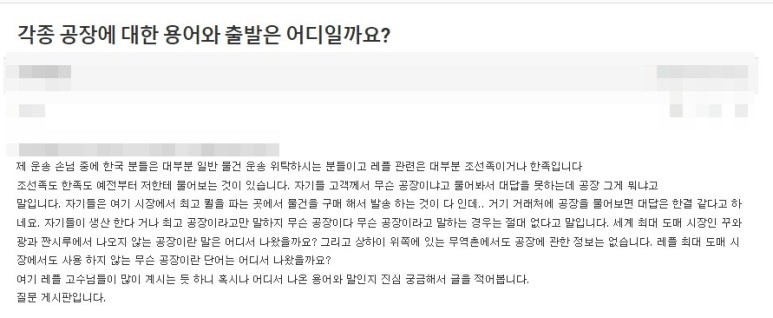 실질적으로 현지서 구매대행하는 조선족이나 한족은 한국 구매자들이 말하는 무슨공장 무슨공장이라는 개념을 모른다는얘기죠.