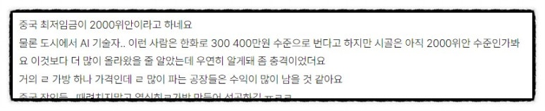 너무 당당하셔서… 이분은 머릿속에 중국은 엄청나게 저렴하다는 인식이 있으신거 같더라구요.