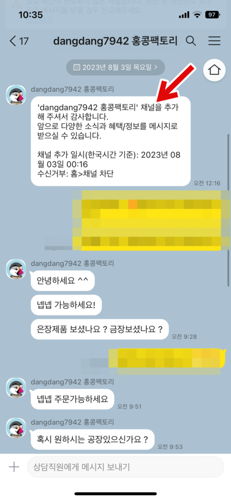 아이디로 검색해서 추가하셔야합니다. 대화창이름에 저희 아이디를 적어놨다고 저희가 아닙니다.