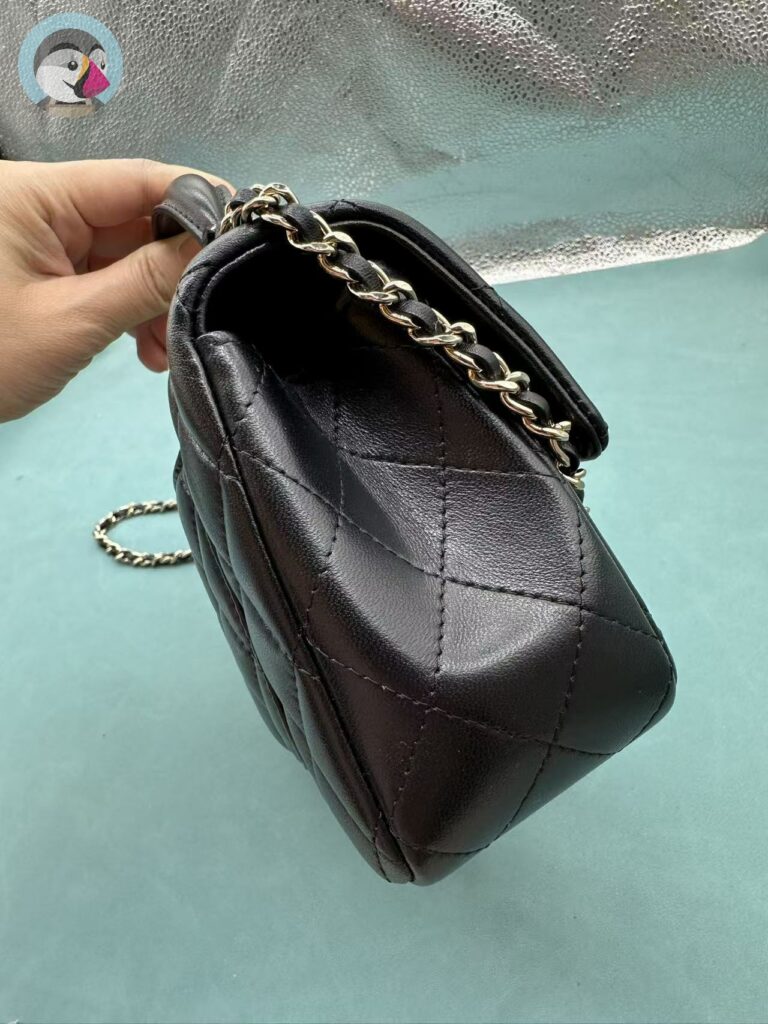 - 실용성: 뉴 미니 사이즈이지만, 필수 소지품(카드지갑, 휴대폰, 립스틱 등)을 수납하기에는 부족함이 없습니다. 내부 구조도 샤넬 클래식 백의 전통을 따라 효율적으로 디자인되었습니다.
