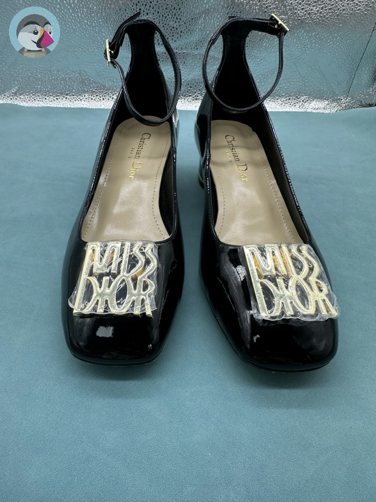 - 디테일: 앞부분에는 골드 마감의 ‘Miss Dior’ 시그니처가 장식되어 있으며, 일부 모델에는 조절 가능한 버클이 있는 발목 스트랩이 특징입니다.