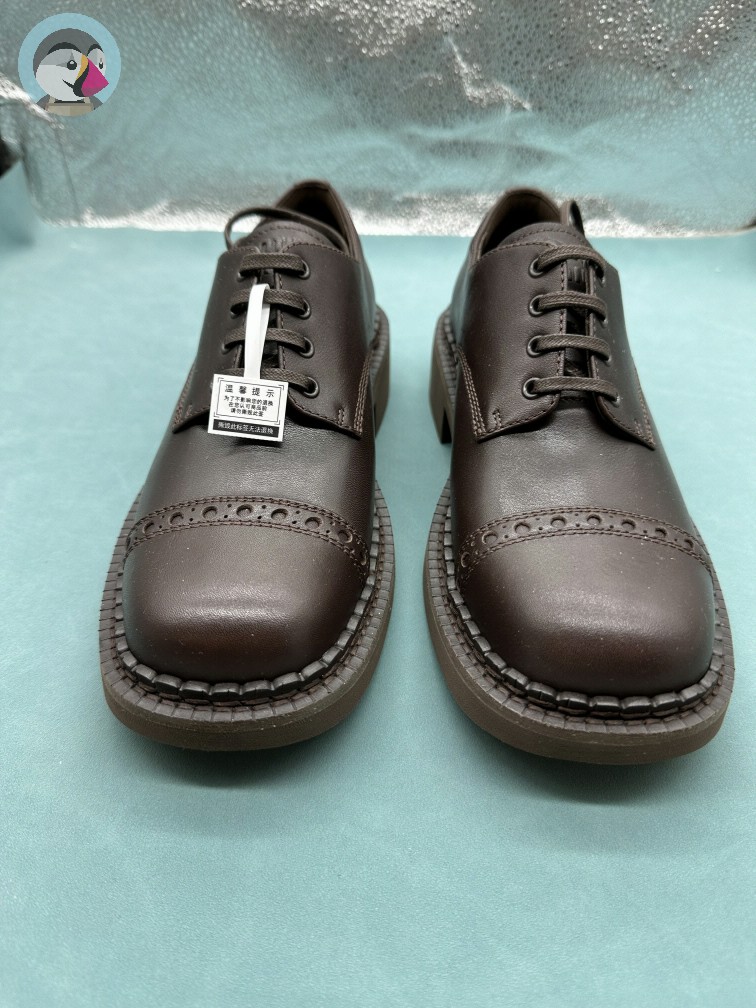 - 소재: 브러시드(광택 있는) 가죽 + 고급 마감 처리로 완성된 슈즈. 클래식 옥스포드 스타일을 기반으로 제작되어 있어요.