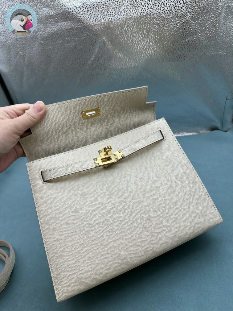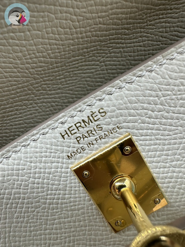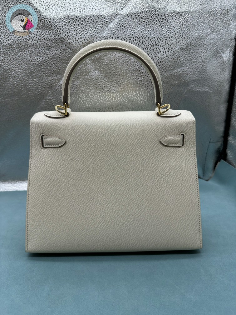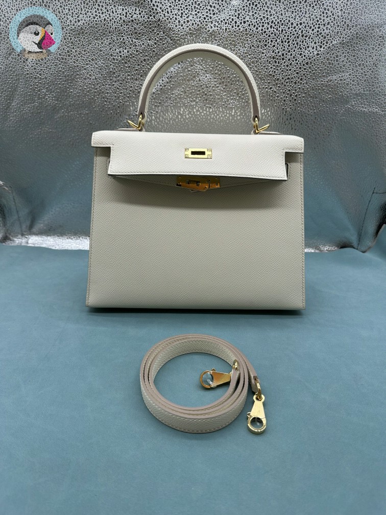 에르메스 켈리 25 셀리에 끄레/그리스 패일 금장 핸드백